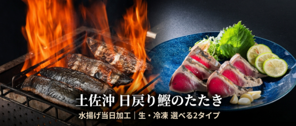 鰹はこだわりの高知県産、それも土佐久礼のカツオは土佐沖でさっき釣ってきたばっかりの「日戻り鰹」釣りたてを船上で冷凍するのではなく、氷で冷やして港へもんて来る。いっぺんも冷凍していない本物の土佐の「生」カツオです。